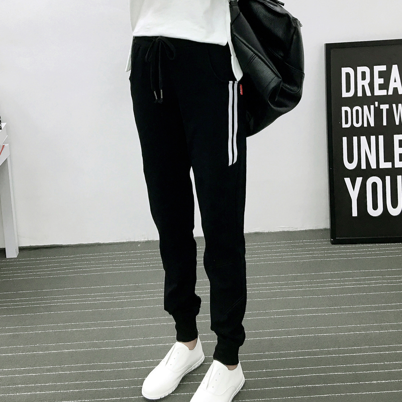 ins运动裤女bf风2018春季新款韩版宽松哈伦收口卫裤黑色...