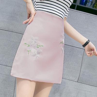 2018夏季新款花朵刺绣显瘦包臀裙夏学生高腰a字裙短裙女半身...