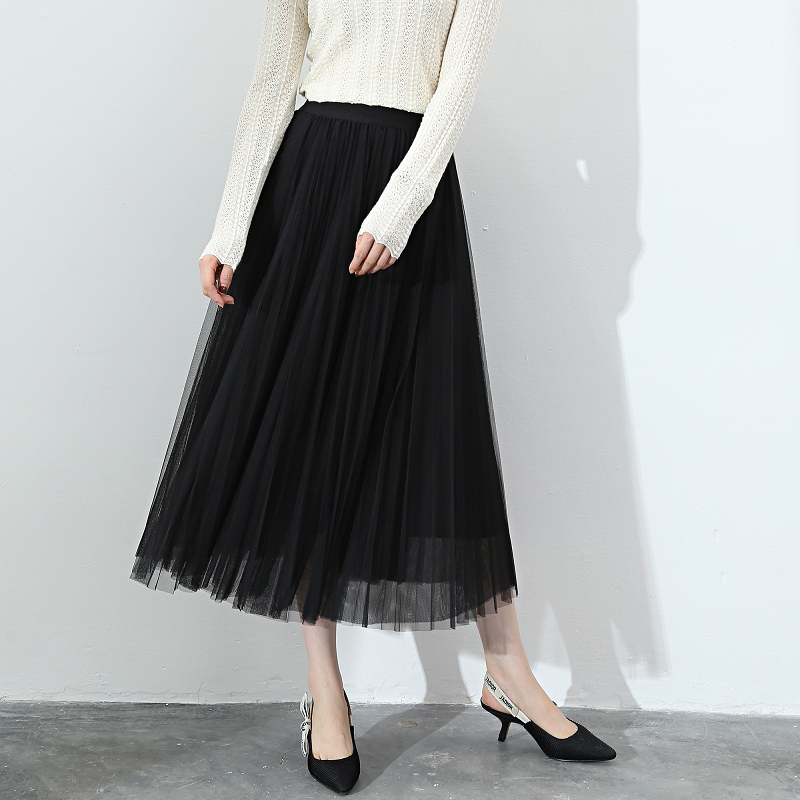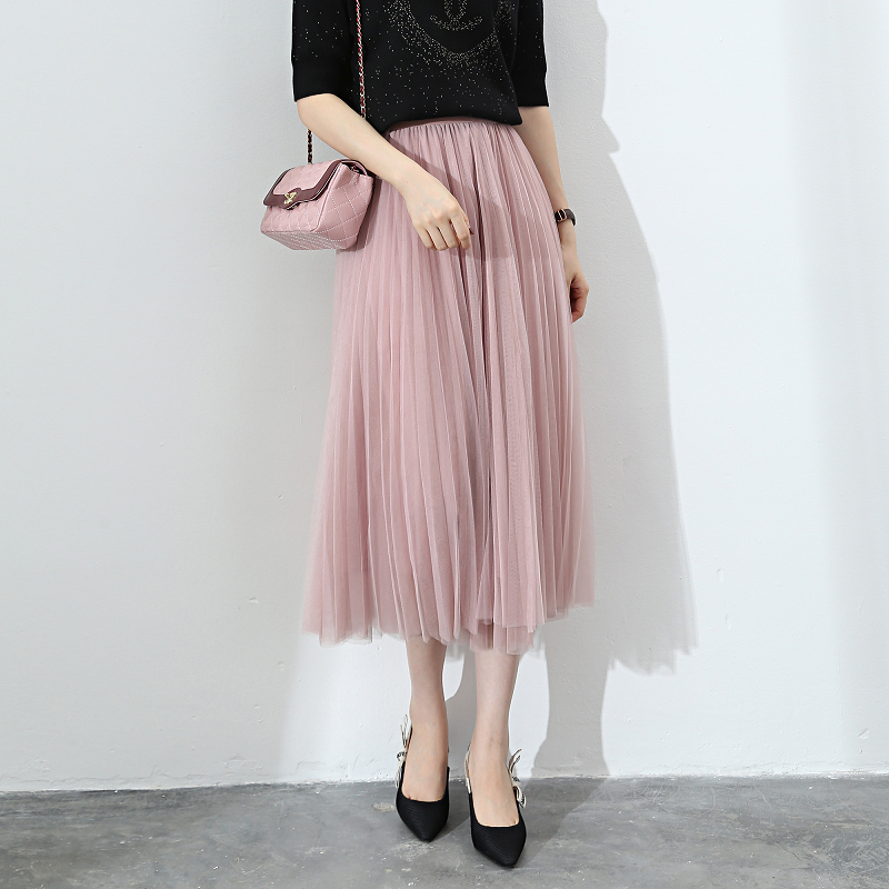 网纱半身裙女2018春夏新款长裙长款A字裙半裙百褶裙裙子半身...