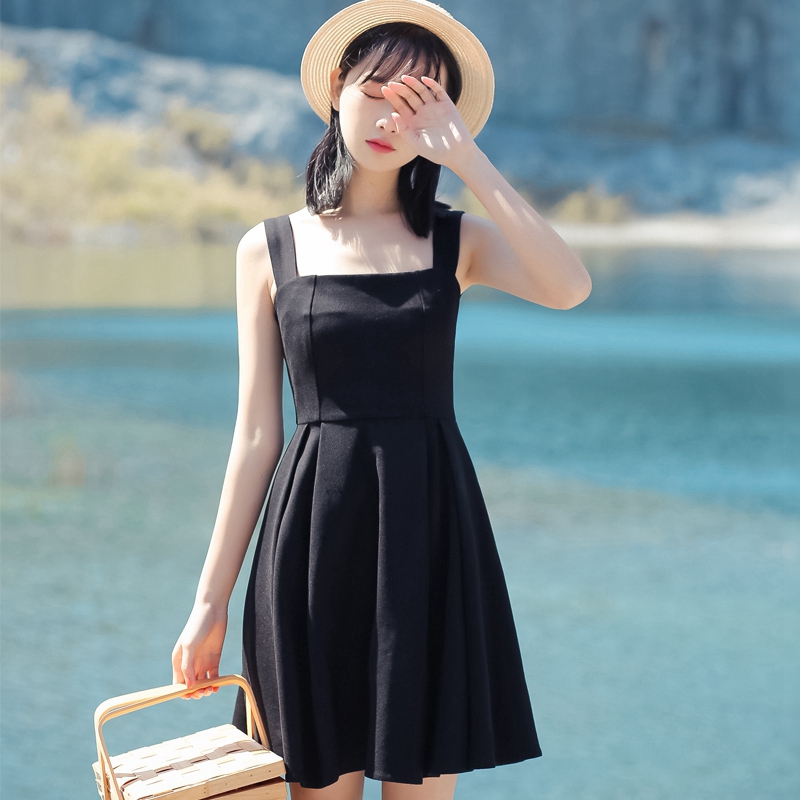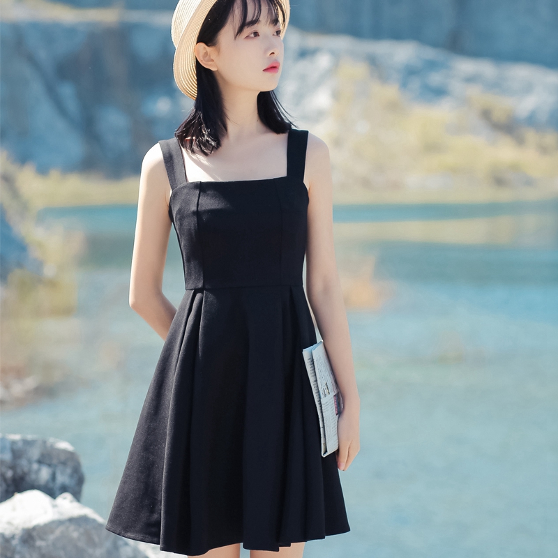 初恋裙复古文艺学生2018新款韩版小清新小黑裙吊带裙子女连衣...