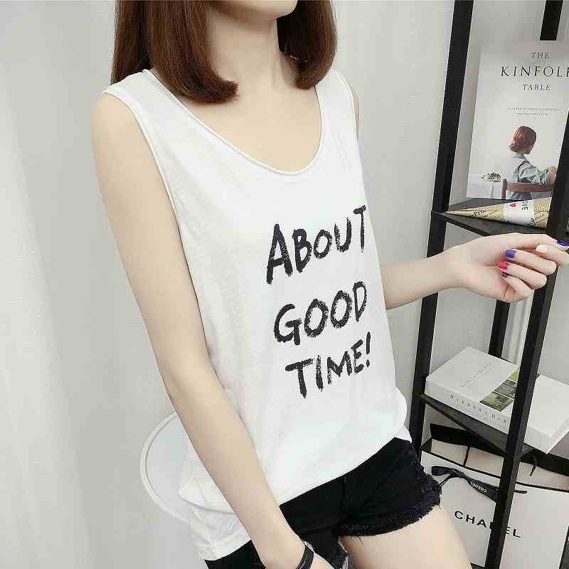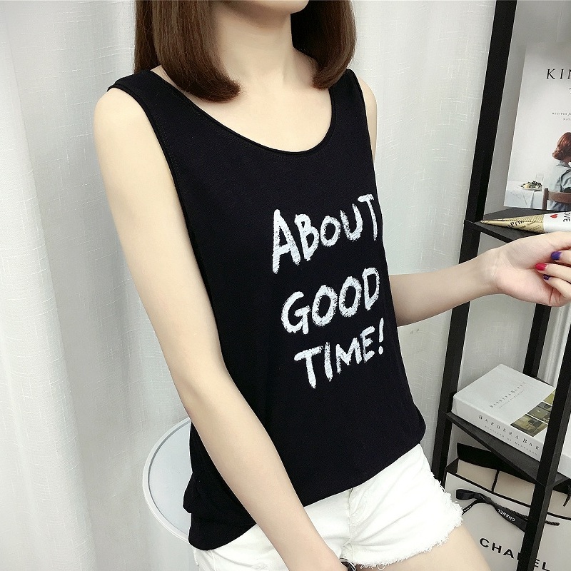 纤雅芙女装背心吊带春夏新款大码休闲百搭宽松圆领印花棉打底背心