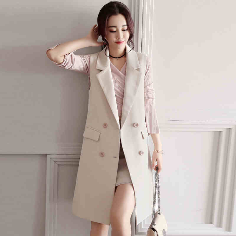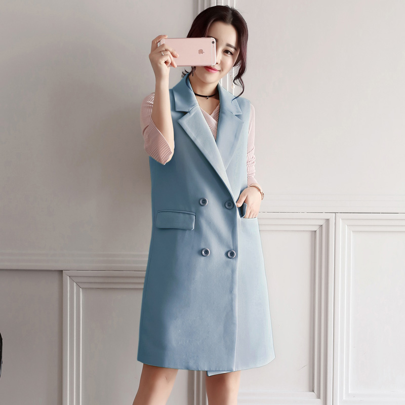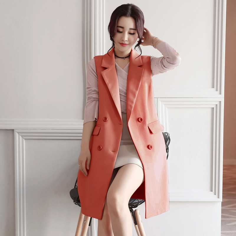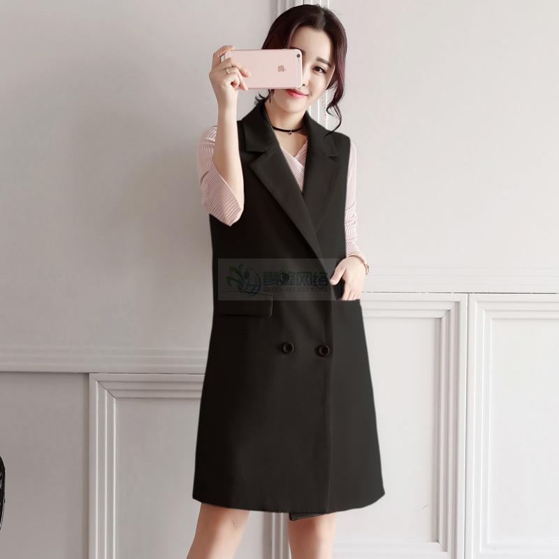马甲女春秋中长款韩版2018新款马夹大码显瘦开衫西装无袖外套...