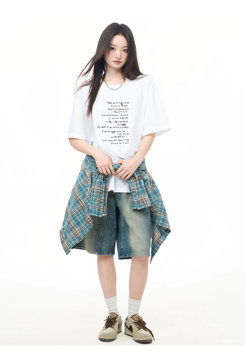 韩版纯棉字母印花短袖t恤女夏季宽松百搭学生ins风潮流上衣打...