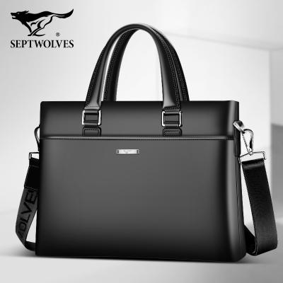 七匹狼男包手提包头层牛皮单肩包商务男士公文包真皮青年斜挎包包