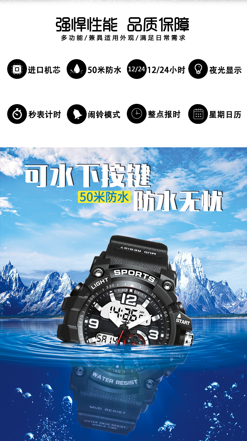 手表男款学生运动中学生初中生炫酷夜光年新款男生电子表