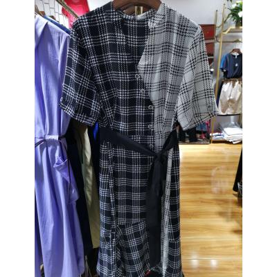别领钻扣V字型领黑腰带连衣裙休闲时尚百搭服装女装中长款上衣外...