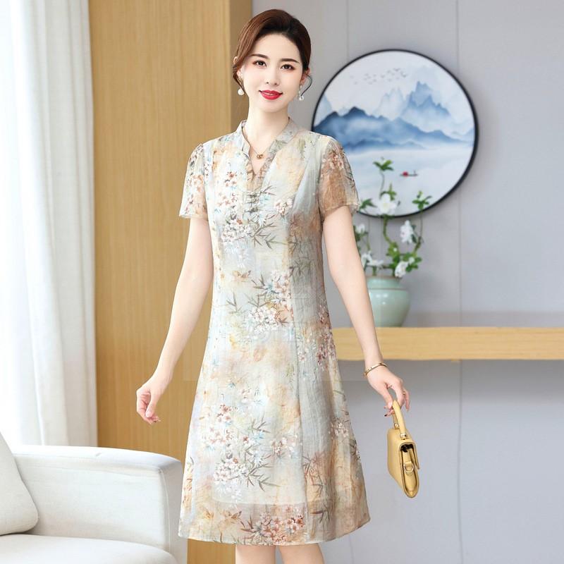 妈妈夏装夏装连衣裙新款洋气中老年女装夏季改良旗袍气质裙子