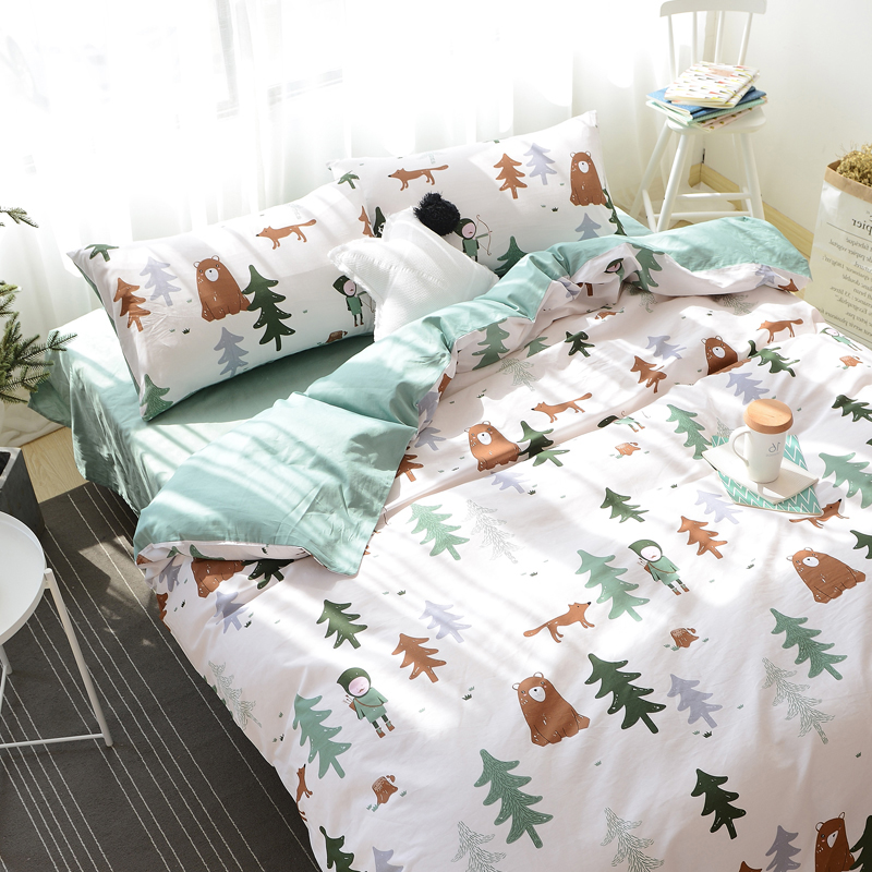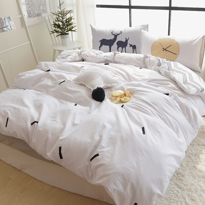 北欧风纯棉四件套全棉床品三4套件床上用品床单床笠1.5/1.8米简约