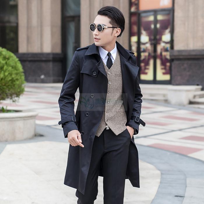 新款春秋男装男士青年修身英伦长款休闲有加肥加大码大衣外套风衣